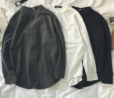 韩版纯色男士棉麻休闲长袖衬