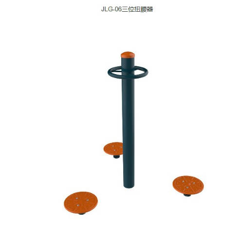 舒华(SHUA)圆管路径系列户外运动健身器材JLG-06三位扭腰器 JLG-06/三位扭腰器 规格:中1490x1350mm 训练功能:主要锻炼腰、髋部 锻炼方法: 增强腰部的灵活性和柔韧性 单手握住扶手,单腿放在按摩轮上,小腿往复滚动按摩轮,双脚交替进行锻炼;或者用手压转轮表面,向相同或者相反方向转动