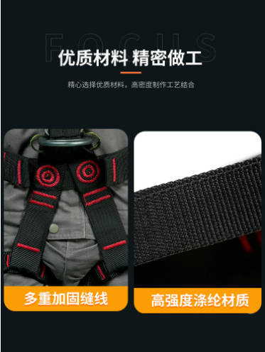 全身安全带高空作业登山救援五点式防坠落工业护腰保护 升级轻型透气面料 搭配人体工程设计 高空作业时腰部连接点可将重量均匀分布在腰带和腿环上整体舒适透气 支持后方连接防坠落系统,泡沫肩带肩距较宽可防止颈部擦伤同时连接在腰部调节扣便于调节舒适的穿戴位置